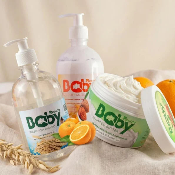 For parents in Ghana, we recommend the Renate Baby Hair Care Set. It includes a gentle shampoo, detangler, and whipped butter formulated for baby hair growth and protection.